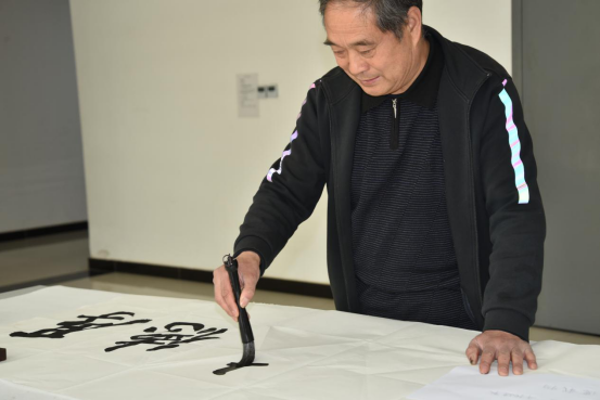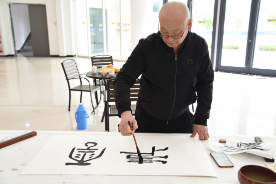 黄忠老师正在创作书法作品