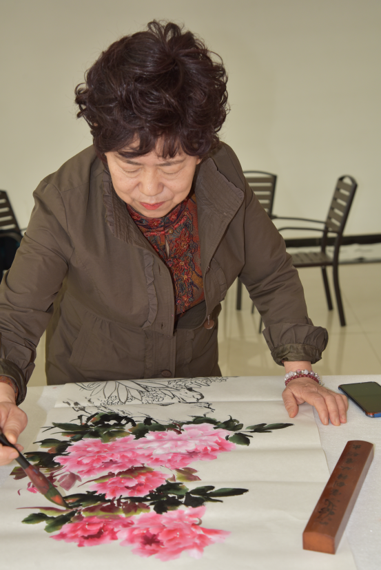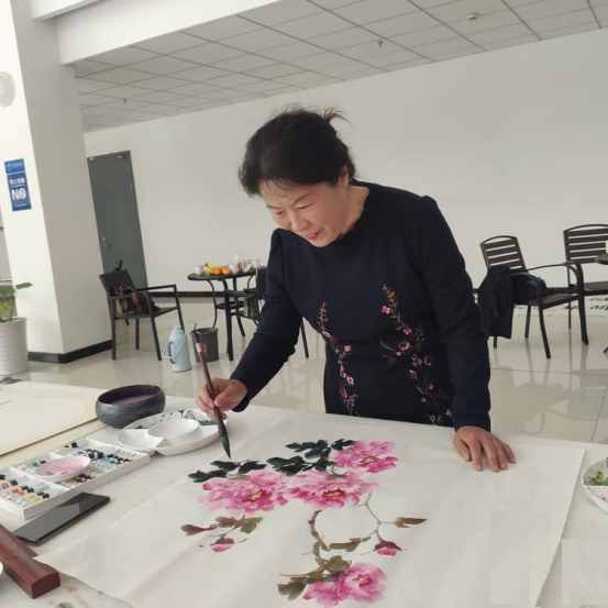 李秀杰老师正在创作国画作品