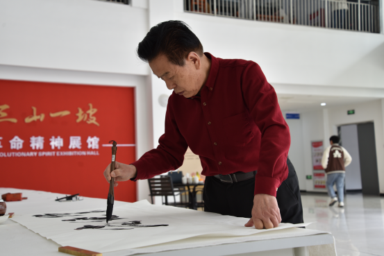 聂明强老师正在创作书法作品