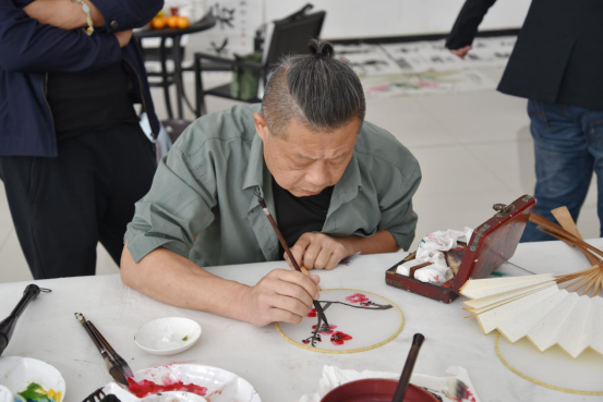 冯波老师正在创作国画作品