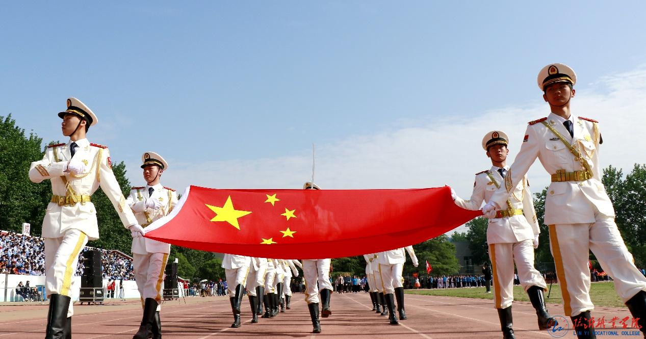 全体师生庄严肃立,齐唱国歌,注视着鲜艳的五星红旗昂扬升起。