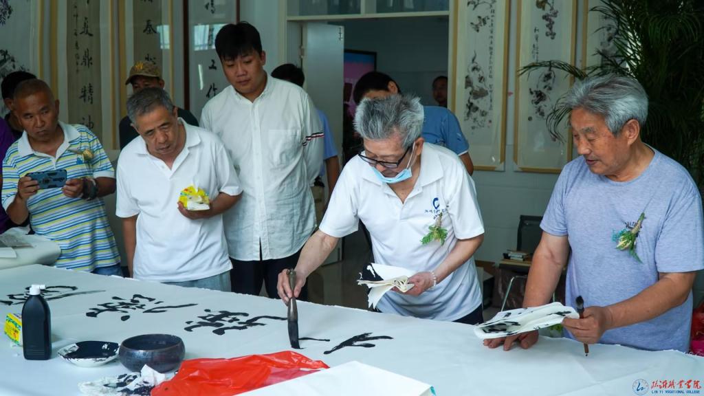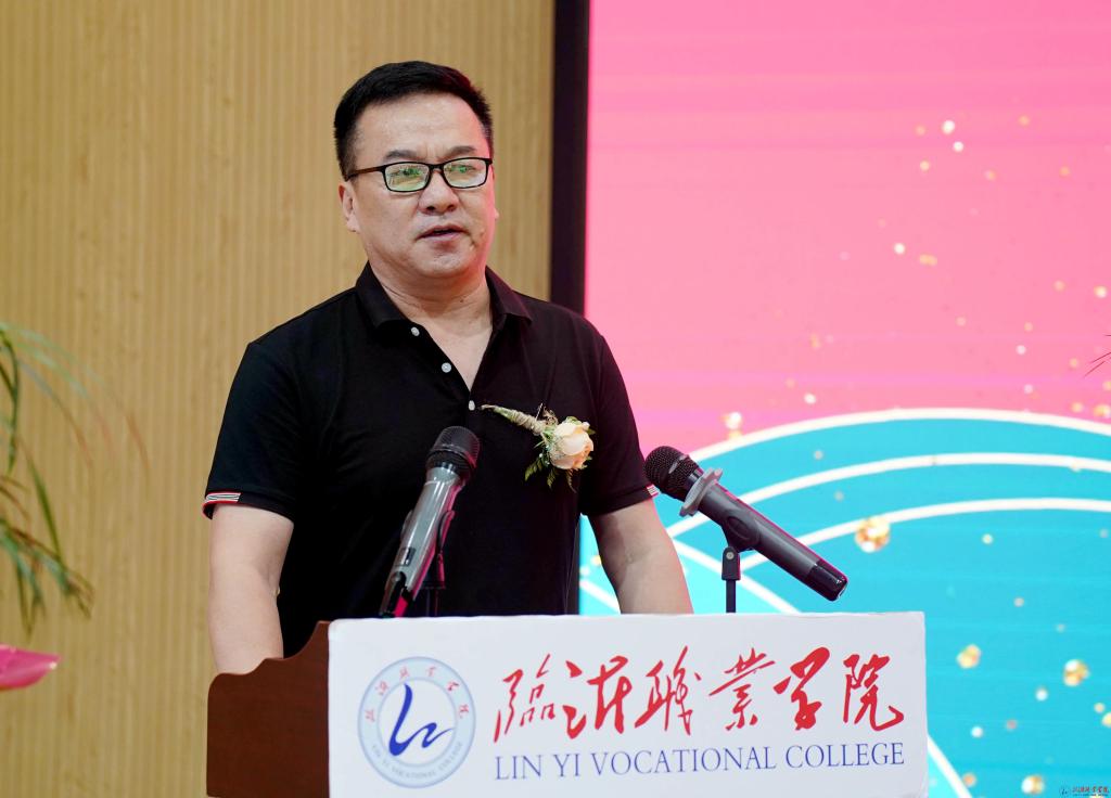 刘磊在致辞中指出,中国书画艺术是世界文化艺术宝库中的精华。在高校中推广书画艺术对提升当代大学生的人文素养具有重要意义,是塑造高素质、复合型人才的有效途径。作为临沂市职业教育的排头兵,学校始终高度重视美育工作,注重学生的通识教育和传统文化培养,积极探索艺术传承的有效路径与经验。各位书画艺术家的到来,为我校增添了新的活力和气息,也将助推我校美育工作迈上新台阶。殷切希望各位艺术家对我校的美育工作给予进一步指导,为更好弘扬优秀民族文化建言献策,共同培养更多有涵养有品位的高素质技术技能人才。