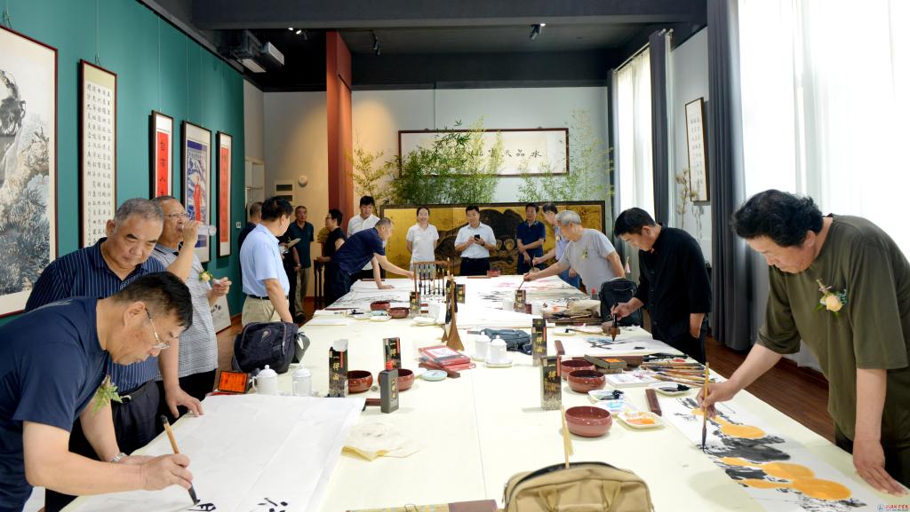 临沂职业学院党委书记刘磊,山东省美术家协会理事、临沂市美术家协会主席侯钧,为马约书画传承工作室揭牌。