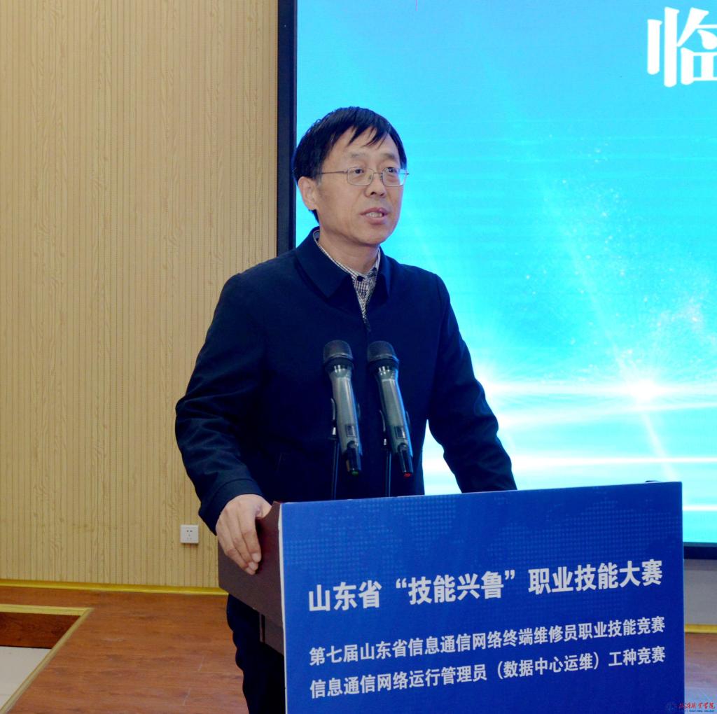 11月17-18日,由山东省人力资源社会保障厅、山东省工业和信息化厅、山东省商务厅、共青团山东省委、山东电子商会联合主办,临沂职业学院、山东省国防机械电子工会、山东电子商会消费电子专委会共同承办的山东省“技能兴鲁”职业技能大赛——第七届山东省信息通信网络终端维修员职业技能竞赛信息通信网络运行管理员(数据中心运维)工种赛项决赛在我校成功举办。山东电子商会党支部书记辛卫华,学校党委副书记、院长安丰和出席活动并致辞,学校党委副书记、副院长杜常芹,党委委员、副院长邹庆法,党委委员、教务处处长赵儒林出席活动。