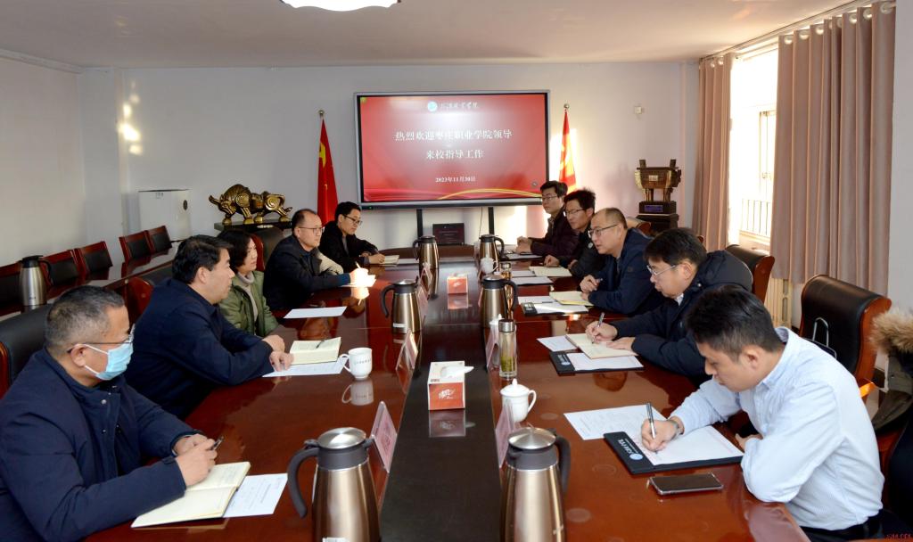 11月30日,枣庄职业学院党委委员、副院长王念,党委委员、纪委书记闫博一行到我校考察交流,学校党委委员、副院长张金祥,党委委员、纪委书记、市纪委驻学校监察专员张丛爱出席交流座谈会。