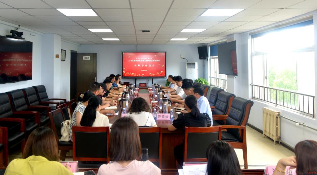 9月10日下午,学校召开教师节座谈会,倾听一线教师意见建议,帮助解决实际困难,在节庆前送关怀、送温暖,落实“为师生办实事”。学校党委书记刘磊出席并讲话,党委副书记、院长安丰和,党委副书记、副院长杜常芹,党委副书记姚兴建,党委委员、组织部(人事处、党建办公室)部长王超,党委委员、教务处处长赵儒林出席会议。