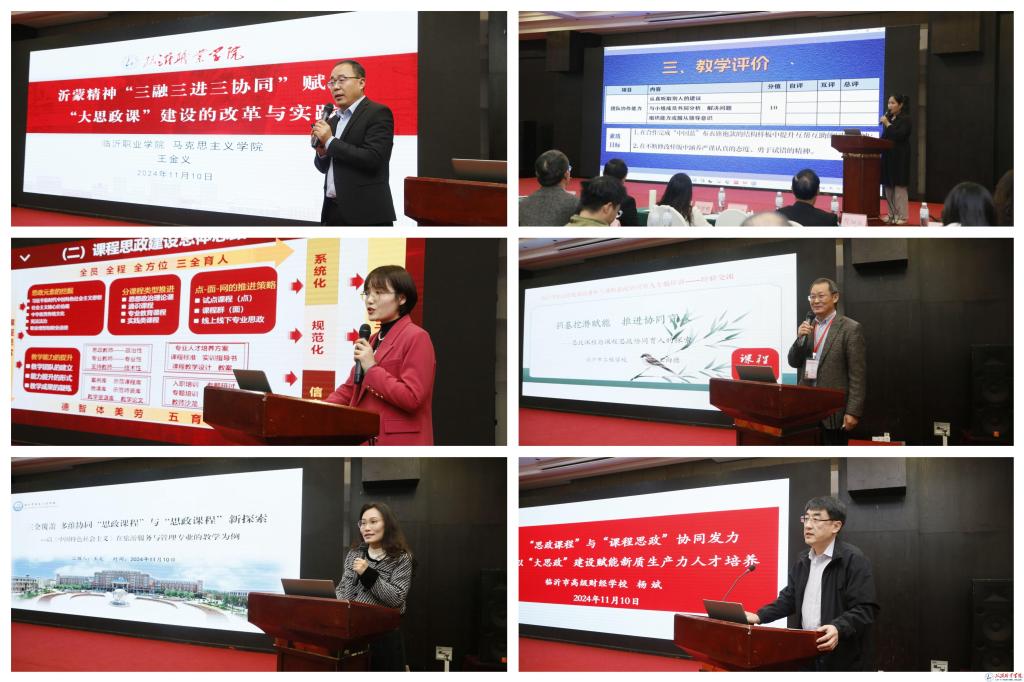 我校两个教学团队就课程思政设计做教学展示。临沂市高级财经学校、临沂市工程学校、临沂市农业学校、临沂市信息工程学校和临沂电力学校、临沂职业学院等六家学校围绕思政课程和课程思政主题,进行了经验分享。