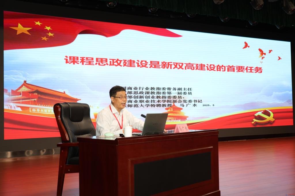 马广水以《课程思政建设是新双高建设的根本任务》为题作报告。报告从国家职业教育改革的战略高度出发,系统阐述了课程思政与“双高计划”建设的内在逻辑,深刻揭示了课程思政在人才培养中的核心地位,针对当前职业教育课程思政建设中存在的痛点、难点,为学校深化课程改革提供了宝贵的“方法论”。