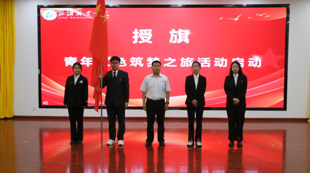 姚兴建为“青年红色筑梦之旅”团队授旗
