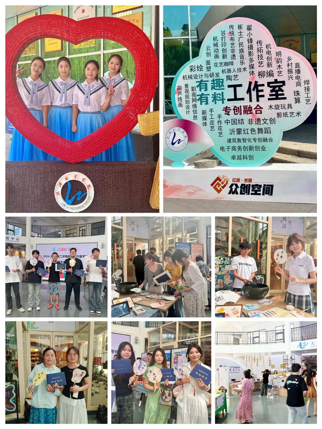 活动现场亮点纷呈,现场展示了专创融合类、非遗传承类34个工作室的学生作品及育人成果,并为2025届毕业生准备了贴心互动伴手礼。