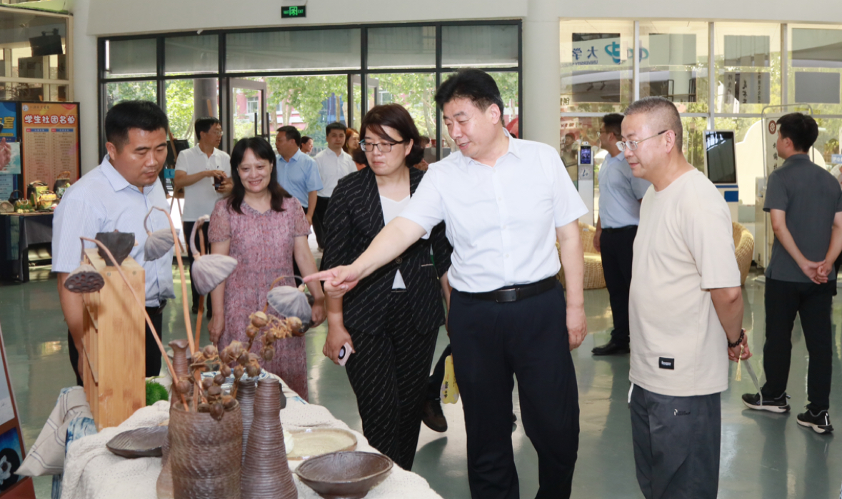 为全面评估教师工作室建设成效,展示学生创新创业成果,7月4日,2024-2025年度第二学期教师工作室考核及学生期末成果展示活动在“红色·丝路”国家级众创空间一楼举行。校党委书记刘磊,党委副书记、院长安丰和及领导班子成员现场指导。