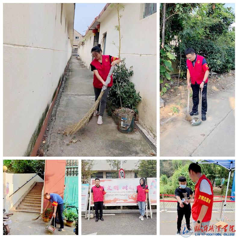 自9月17日开始,学院开展文明城市创建志愿服务活动十余次,三百余名教师志愿者按照志愿服务任务分工,分批次、错时段在学院主校区、经开校区、河东校区、原经济学校家属院、原建设中专家属院、原商校南校区家属院、原商校北校区家属院、主校区家属院等地开展志愿服务工作。老师们主动放弃休息时间,在学院大门前轮流执勤,协助安保人员检测进出人员体温,并做好体温检测记录,清扫门口卫生,引导车辆停放等;在家属区开展志愿服务的老师们,清理花坛草丛中杂物,对绿化带、道路上的塑料废品、烟头、纸屑等杂物进行了集中打扫,提醒居民有序摆放车辆,同时对小区单元门上的广告、乱涂画、乱拉挂等进行整治清除,以实际行动守护文明城市,展现临职风采。