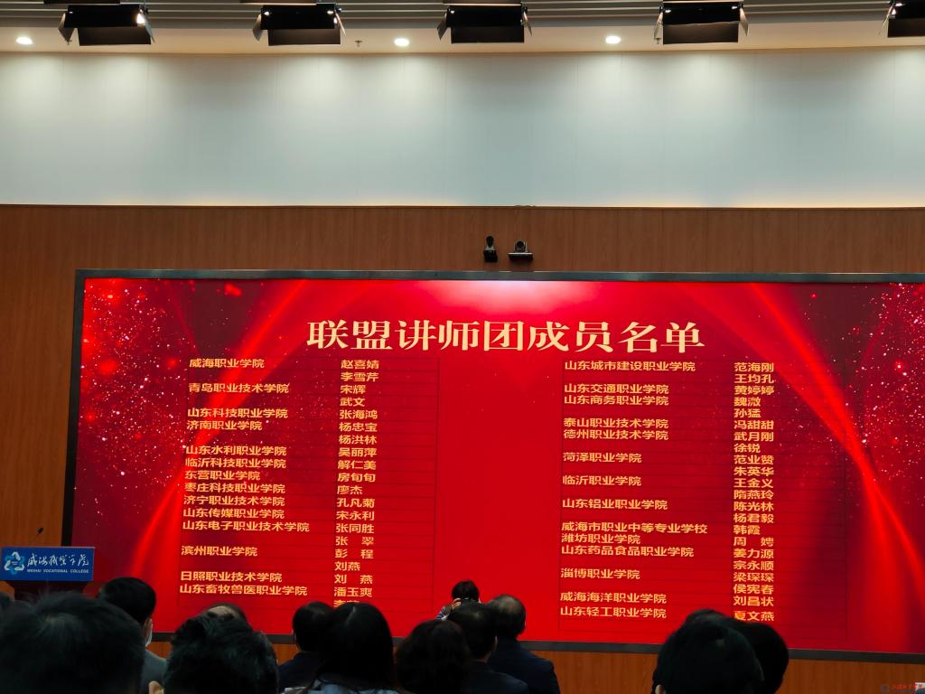 大会由威海职业学院党委副书记李建刚主持,威海职业学院院长李耀华、威海市社联主席王治国、威海市教育局副局长邵海东先后发表大会致辞。大会表决通过了《山东省职业院校爱国主义教育合作联盟章程》,宣读了联盟理事会成员学校名单和联盟讲师团成员名单,我院两位思政课教师王金义和隋燕玲被推选为讲师团成员。