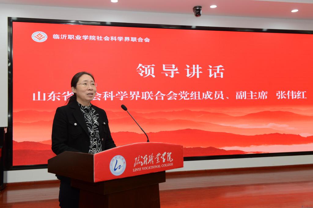 张伟红代表省社科联,对大会的召开、对学校社科联的成立表示热烈祝贺,对当选的主席团成员和全体委员致以亲切问候。她指出,学校作为我省哲学社会科学事业发展的重要力量、重要阵地,不断加强内涵建设,积极推进社科研究和社科普及,先后立项市级以上课题100余项,获社科类成果奖200余项,23名教师入选临沂市社科专家库,被授予临沂市优秀社会科学普及教育基地荣誉称号。学校社科联的成立,是优化学术资源、推动理论创新、提升研究水平、培养人才队伍的重要途径,也是新时代加强社科工作创新的重要措施和手段。希望学校以社科联成立为新的起点和新的契机,团结带领广大社科工作者,牢记“培根铸魂”的职责,承担起“以文化人、以文育人、以文培元”的使命,为加快建设具有中国特色、山东气派、齐鲁风格的社会科学做出新的更大贡献,奋力书写新时代哲学社会科学工作新篇章