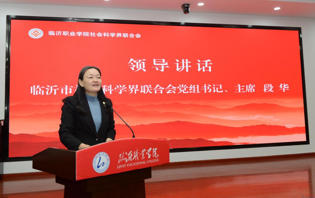 段华代表市社科联,对学校社科联的成立表示热烈的祝贺,对学校哲学社会科学工作给予了充分肯定。她表示,社科联组织是党委政府联系广大社科工作者的桥梁和纽带、是“社科工作者之家”,职能和职责在“联”,作用和优势在“合”。希望新成立的学校社科联,积极做好“联”与“合”的文章,在工作开展中既要积极联系对接省市社科联,也要把学校自身广大人文社科工作者、教师紧密、有力地联合起来,共同当好学校社科理论研究的先锋,当好学校人文学科特别是思政课教育教学研究的先锋,当好加强学校意识形态工作的先锋,助力学校进一步加快国内知名、省内一流高职院校建设,打造临沂乃至全省职业教育领域意识形态工作的高地。