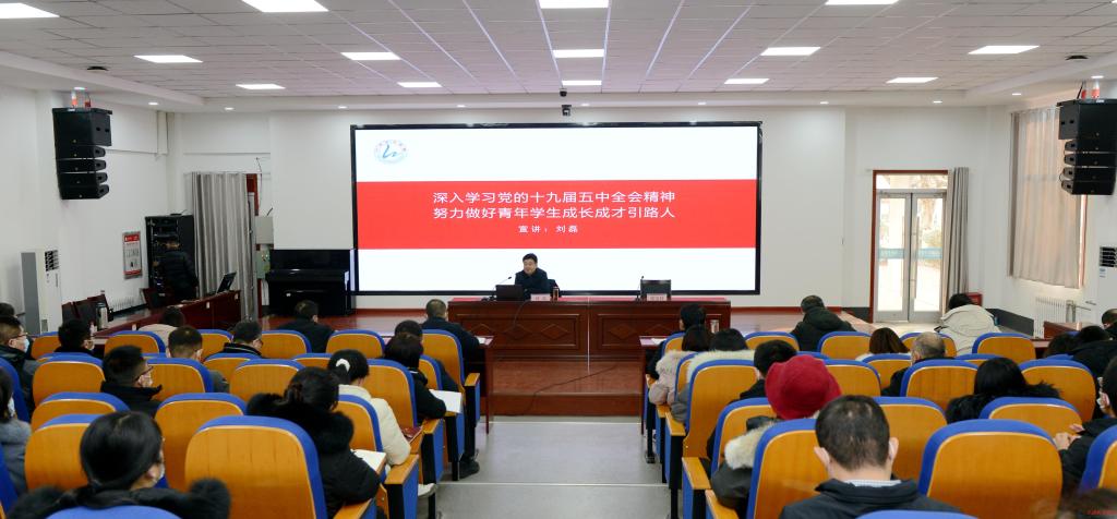 1月6日上午,学院党委书记刘磊在美术馆报告厅为全体辅导员作题为《深入学习党的十九届五中全会精神 努力做好青年学生成长成才引路人》的专题宣讲报告。全体辅导员、学管人员参加本次宣讲会,宣讲由学院党委委员、副院长张金祥主持。