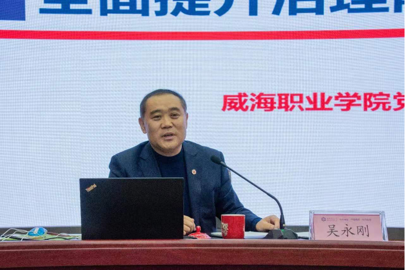 威海职业学院党委书记吴永刚致欢迎词,并以“以改革促转型,以创新增活力,全面提升治理能力和办学水平”为题,介绍了威海职业学院在深化服务面向改革、深化教学体系改革、深化机构人事改革、深化绩效分配改革、深化后勤管理改革、深化办学体制改革、深化学生工作改革7个方面的工作进展,毫无保留地分享了在深化改革过程中的困难、不足和经验。