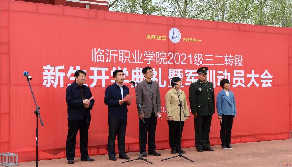 学院领导班子成员,罗庄区武装部相关领导,相关职能处室、二级学院负责人出席,承训教官、学管人员以及800余名2021级三二连读转段新生参加开学典礼。