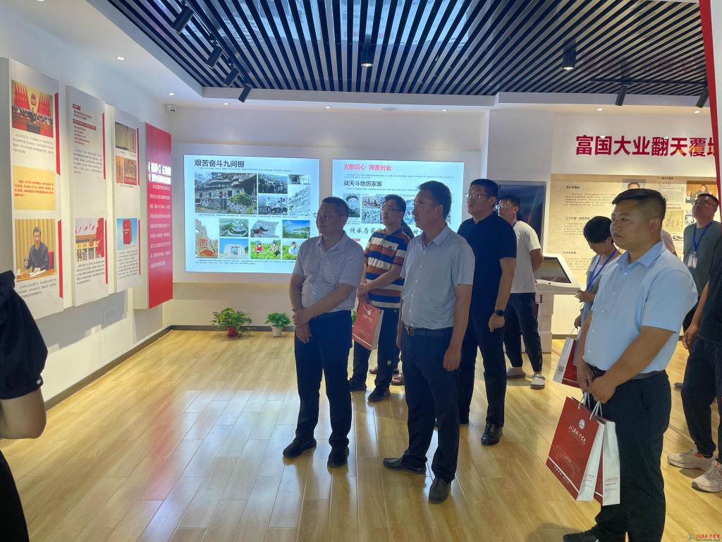 开班仪式结束后,赵军及参训学员在现代建筑学院院长王会永陪同下参观了学校非遗展览馆、培根铸魂馆,了解学校非遗进校园工作开展情况,接受红色教育。