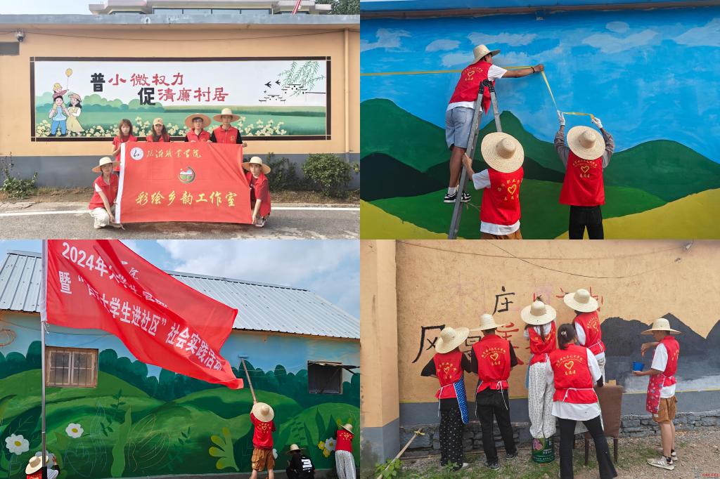 7月13日-26日,“彩绘乡韵”志愿服务团前往沂南县张庄镇周家峪子村和青驼镇高里村,结合当地实际,发挥专业优势,为当地墙体设计绘画题材和内容,在实践中弘扬红色精神,在广袤的乡村土地上学以致用,挥洒汗水,用艺术创作服务乡村振兴。