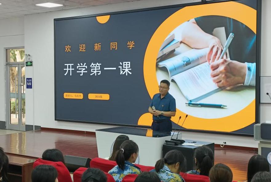 医养健康学院党总支负责人以“以心迎‘新’,‘医’路同行”为主题,结合学院的发展历程、办学理念和培养目标为新生们展开了开学第一课,强调了作为医养健康领域未来人才的责任与使命。他鼓励新生们珍惜大学时光,勇于探索未知领域,积极参与社会实践,不断提升自我。