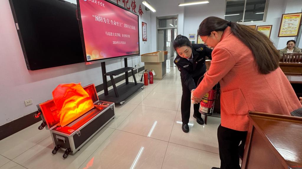 为提升马院教师消防安全意识,提高火灾防范及逃生自救能力,11月25日,马克思主义学院开展“预防为主 生命至上”消防安全演练活动,安全保卫处消防安全管理专职人员到场指导。