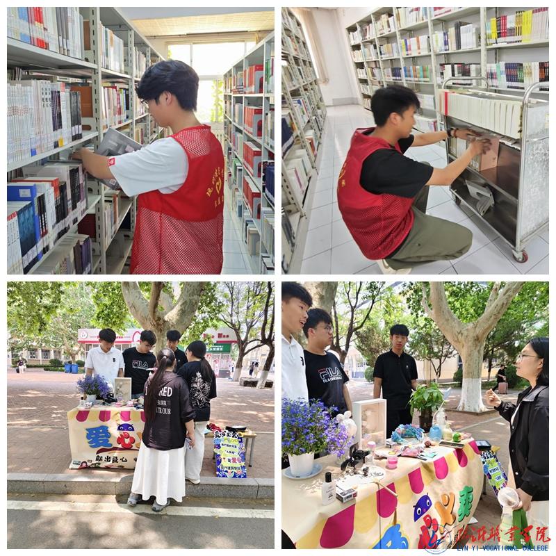 图书馆志愿服务中,20名学生分类整理 3000 余册图书、清理图书馆环境,参与学生感慨:“整理书架就像梳理内心秩序,每本书的归位都是一次治愈。”