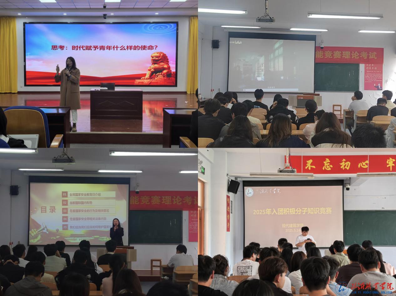 本次系列主题团课以“多维赋能青春,筑牢信仰根基” 为主线,结合建筑专业特色,创新团课形式,聚焦思想引领,设置了多个主题鲜明、内容丰富的课程模块,为青年成长注入新动力。在 “红色建筑中的党史故事”模块中,主讲老师通过展示革命历史时期的经典建筑案例,深入讲解建筑背后承载的红色记忆与精神内涵,让同学们在感受建筑艺术魅力的同时,深刻领悟党的光辉历程和伟大精神;在“多元化主题活动”模块,团课通过开展团史党史知识竞赛、团课读书会共读红色经典、观看党史影片等专项活动,深化党史团史知识学习;同时,学院结合“五四精神”、“国家安全教育日”等特殊时间节点开展主题教育,激励青年学子增强使命担当、强化国家安全意识。学院同步开展“红引青行”党建带团建系列活动,通过党团联学、主题共建推动党团协同育人。