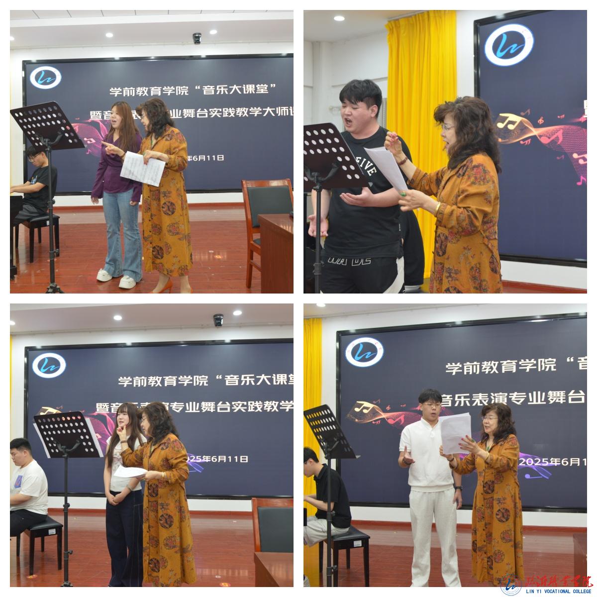 6月11日,学前教育学院“音乐大讲堂”暨音乐表演专业舞台实践教学大师课在学院美术馆成功举办。山东省歌舞剧院女中音歌唱家徐文秀受邀担任本场大师课主讲嘉宾。学前教育学院师生代表共180余人参加活动。本次活动以“舞台实践赋能专业成长·产教融合助力文旅发展”为主题,是学前教育学院深化“岗课赛证”综合育人、推动音乐表演专业服务临沂文旅产业的重要实践。