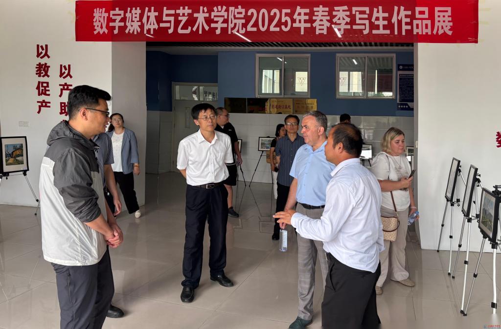 6月10日,数字媒体与艺术学院举行2025年春季写生作品展,学校党委副书记、院长安丰和,党委委员、副院长邹庆法及外国友人到场指导。