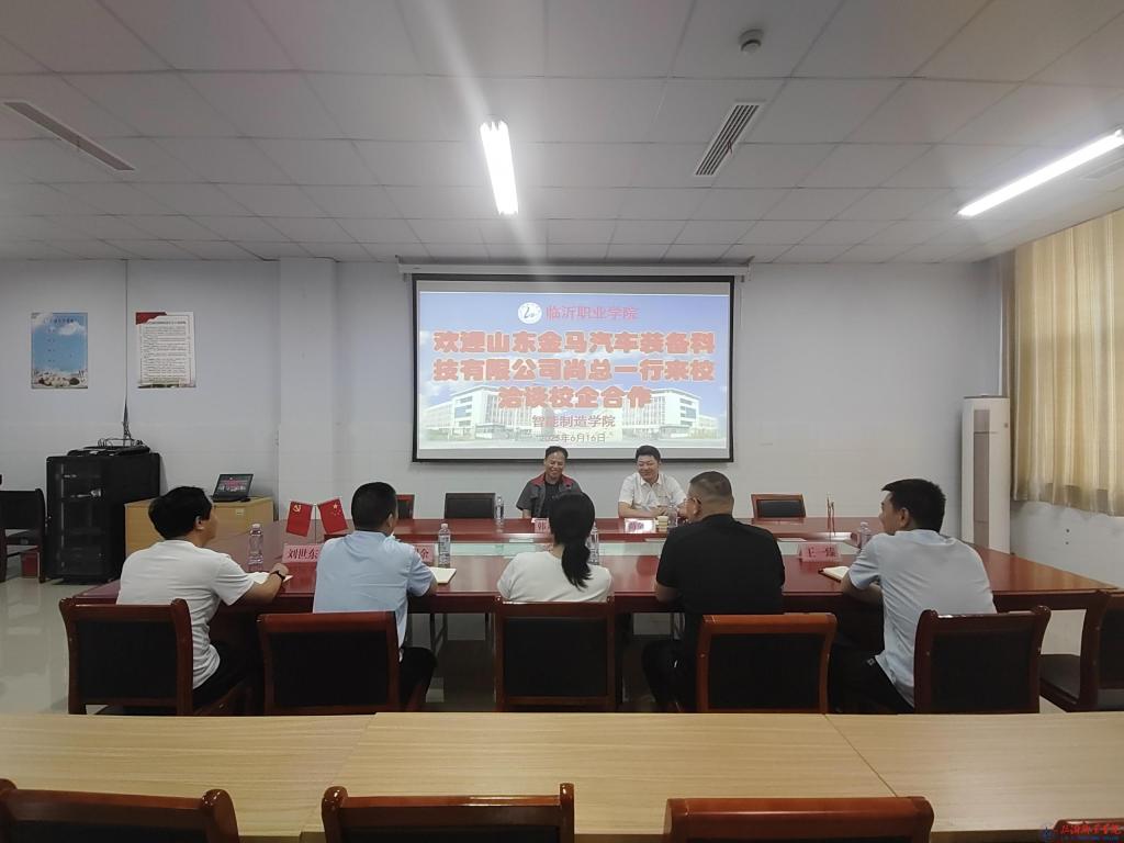 6月16日下午,山东金马汽车装备科技有限公司副总经理尚金翅、韩月明一行到访智能制造学院,就产教融合事宜展开深入交流,智能制造学院相关负责同志参加座谈。