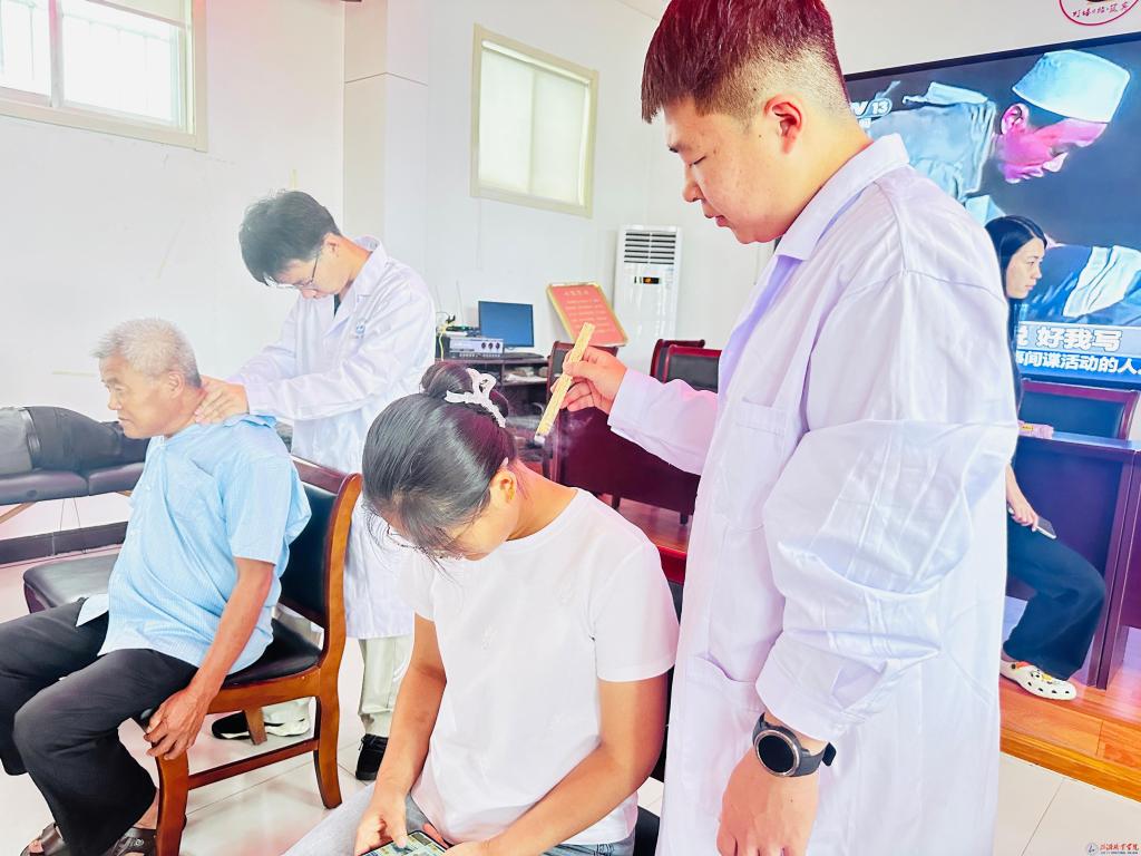 “来,跟我一起做,拇指按揉这个穴位可以缓解头痛...”在郑旺镇常旺街村,志愿者们一边为村民提供艾灸、推拿、耳穴压豆等中医服务,一边耐心教授简单实用的中医保健方法。两天时间里,200余人次接受了专业的中医理疗服务。