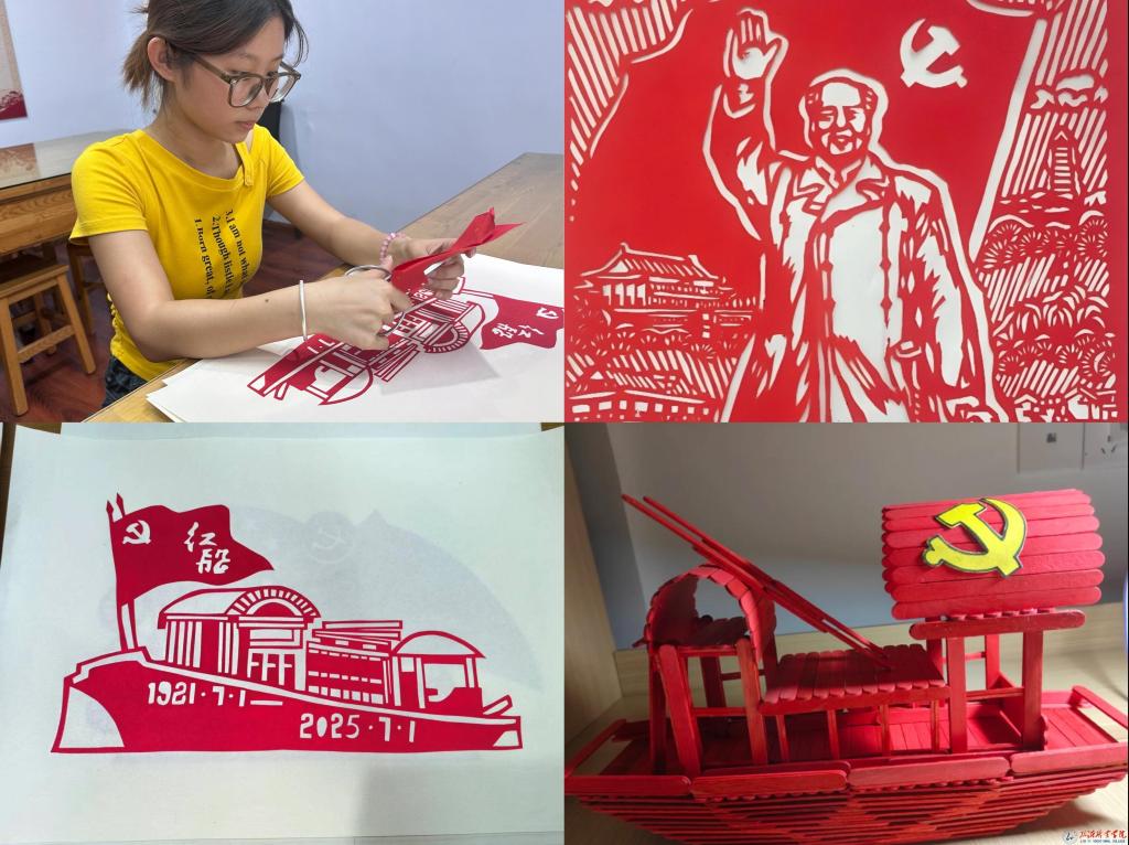 为喜迎“七一”建党节,赓续红色血脉,引导学生在创作中感悟初心使命,学院组织学生通过创作以党史为主题的剪纸、面塑等非遗作品,串联红色精神与非遗技艺,以此形式向党献礼,传递党领导人民创造的伟大精神。