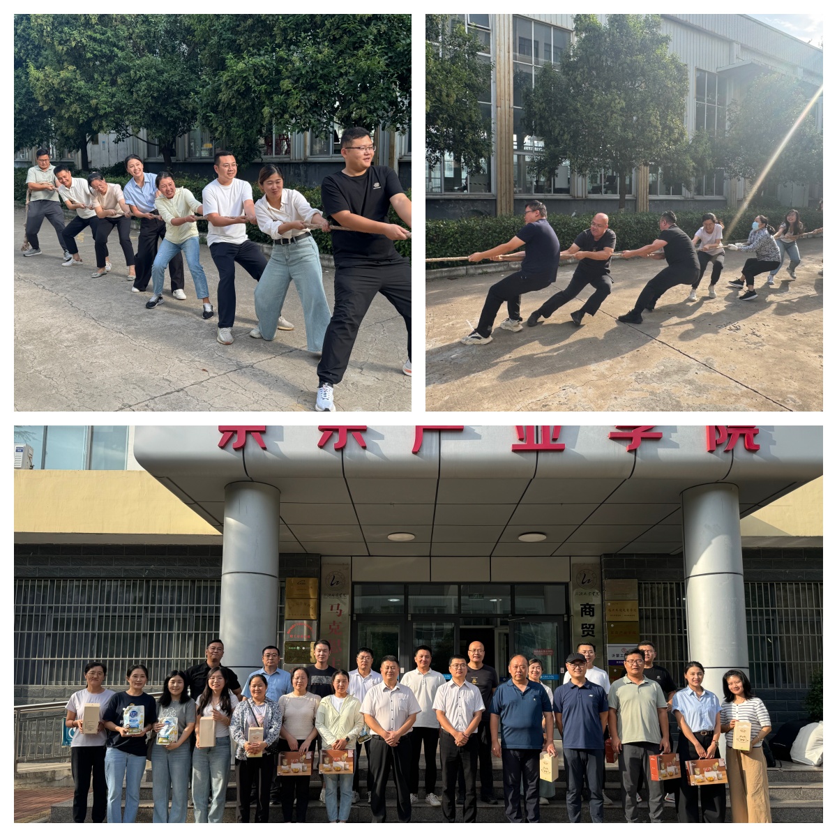 9月10日下午,学院在楼前举行教职工拔河比赛。各教研室代表队精心排兵布阵,队员们个个紧握长绳,双脚稳扎地面。当比赛的哨声骤然响起,所有参赛教师瞬间迸发出巨大的能量,他们心往一处想,劲往一处使,身体后仰,口号铿锵,长绳中心的红标记在双方界线上来回移动,场面扣人心弦。