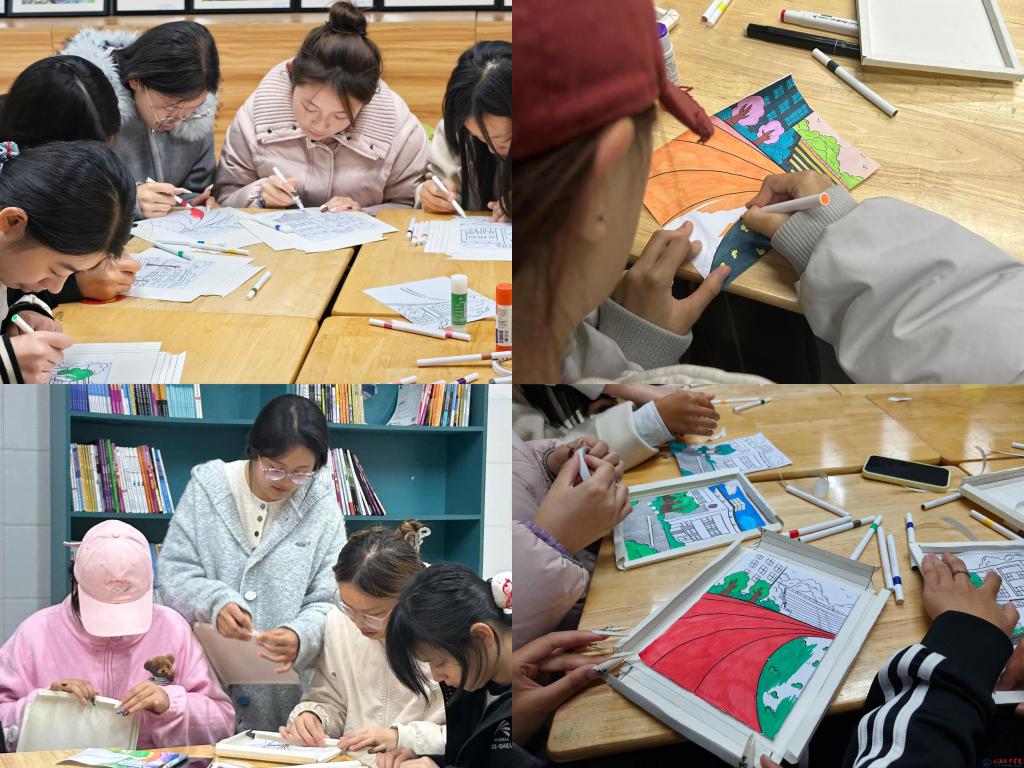10月21日,参与者选取校园场景线稿创意填色,添加个性化元素后制作专属相框,用画笔定格青春视角下的校园美景,深化了对校园的归属感与集体凝聚力。