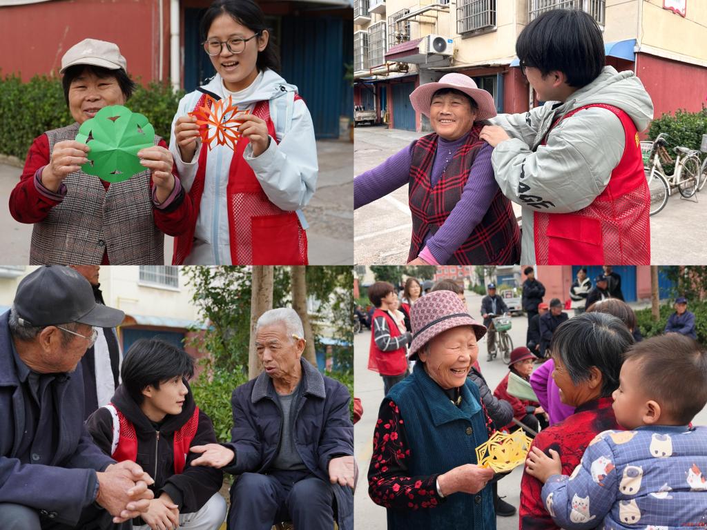 志愿者们与老人围坐交流,倾听其人生经历,以真诚的态度沟通交流,用温暖的话语给予慰藉,还主动为老人捏肩捶腿缓解疲劳,与老人同剪窗花,现场欢声笑语不断。