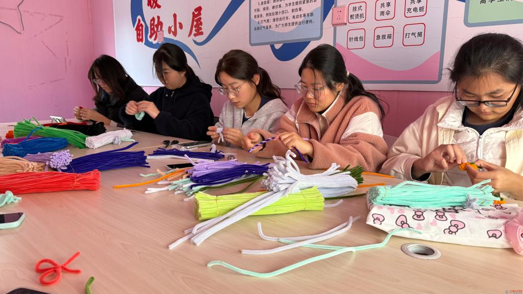 “指尖秋韵,摇曳心间”秋日手作工坊吸引了众多手工爱好者。同学们兴致盎然地制作独具特色的秋日主题装饰摆件。在专注的创作过程中,大家不仅体验了手作的乐趣与美感,感受了季节的流转之美,同时将内心的温暖与宁静具象化为可触摸的艺术品。
