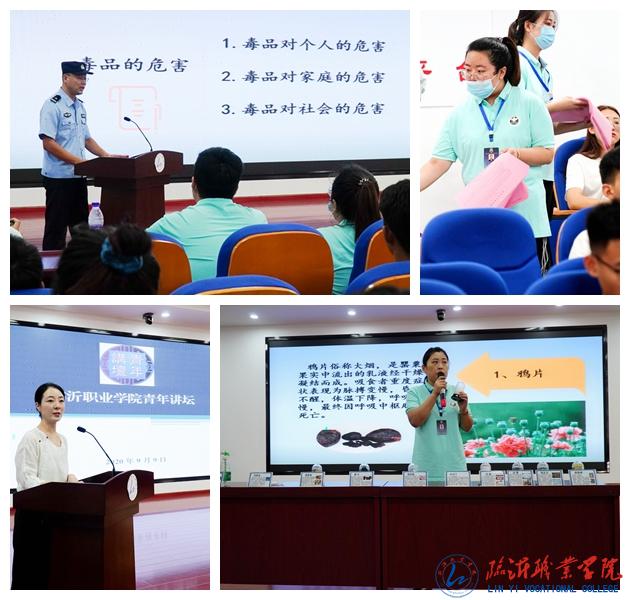 为全面夯实学校禁毒宣传教育成果,9月9日上午,临沂职业学院青年讲坛第四期——“珍爱生命 远离毒品”禁毒宣讲进校园第一讲在美术馆顺利开展。宣讲由临沂市市公安局罗庄分局禁毒大队副队长郑警官主讲,罗庄区禁毒办主任艾欣欣和志愿社工现场协助,临沂市电视台跟踪报道。学生处(团委)和各二级学院辅导员代表及学生干部现场聆听了讲座。