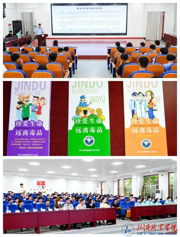 郑警官结合罗庄区毒情形式和工作实际,以毒品的危害性、伪装性、迷惑性和欺骗性为重点,通过令人扼腕叹息的案例,向广大青年学生讲述了吸食毒品的严重后果。罗庄区禁毒办公室艾主任和社工向同学们分发了宣传材料,警示广大同学提高警惕,预防潜在危险的发生,同时提醒同学们牢固树立洁身自好、远离毒品的健康生活意识。会后,学生处(团委)组织部分学生干部到罗庄区禁毒康复中心现场观摩,进一步强化了宣讲效果。
