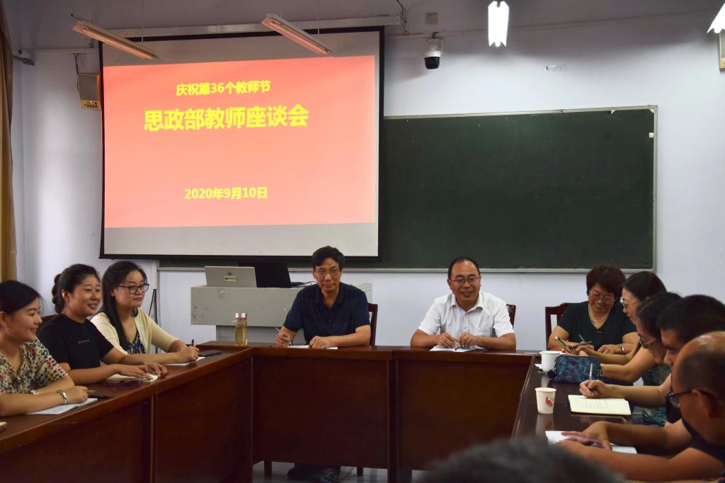 座谈会上,思政部党总支书记王金义首先肯定了一年来思政部的工作成绩,对辛苦工作在教学一线的教师,表达感谢和节日祝福。与会教师们畅所欲言,亲切交流,分享自己的所思所想。大家纷纷表示,作为一名教师,对教育工作,要抱有热爱、满腔激情,对学生,要担有责任,言传身教。新时代思政课教师责任重大、使命光荣,要认真站好思政课堂,培养担当民族复兴大任的时代新人。