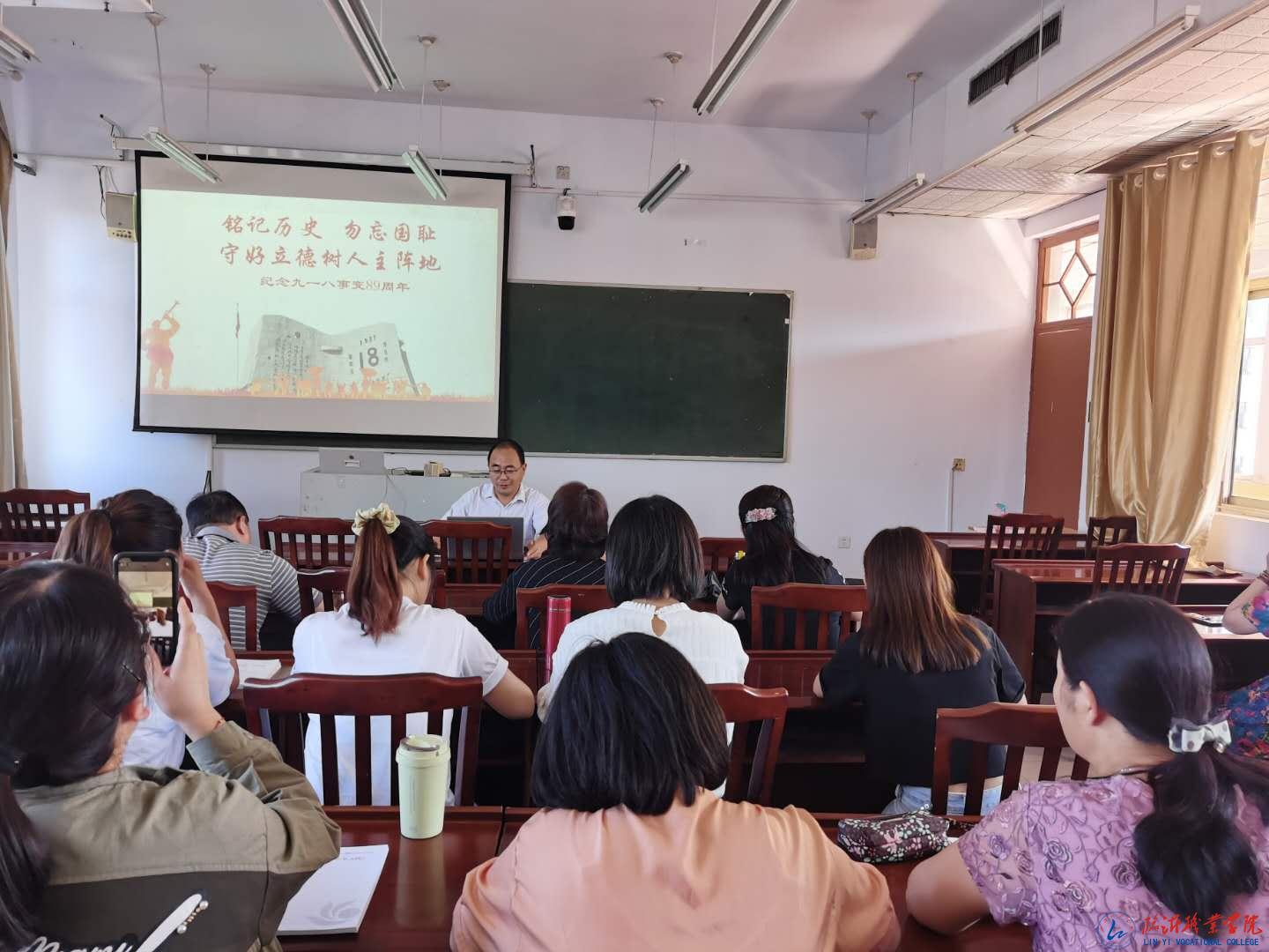 王金义带领大家回顾了“九·一八”事变的历史起因和过程,回忆了抗日战争时期中国人民饱受日本帝国主义欺凌的苦难历史,观看了当年的老照片,讲述了典型人物事迹,一起缅怀逝去的英雄,珍惜来之不易的和平发展环境。王金义强调历史是最好的教科书,也是最好的清醒剂,我们要铭记历史,勿忘国耻,担当起为党育人、为国育才的历史使命。