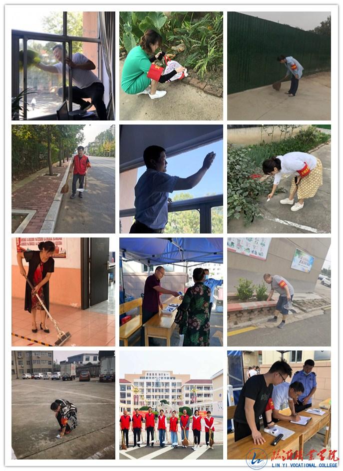 6名老师到原商校南校区家属院参加了志愿服务活动,对社区绿化带内、道路上的塑料废品、烟头、纸屑等杂物进行了集中清理打扫,同时对小区单元门上的小广告进行了清除,积极参与小区各项文明创建工作;6名老师每天到学校大门口执勤,打扫卫生,测量体温,引导文明停车,对不文明现象及时制止;8名党员参加了“迎中秋,庆国庆”环境卫生清洁志愿服务活动,彻底清除卫生死角,清理下水道垃圾,对乱穿马路、乱停乱放、乱扔垃圾等不文明行为进行劝阻。