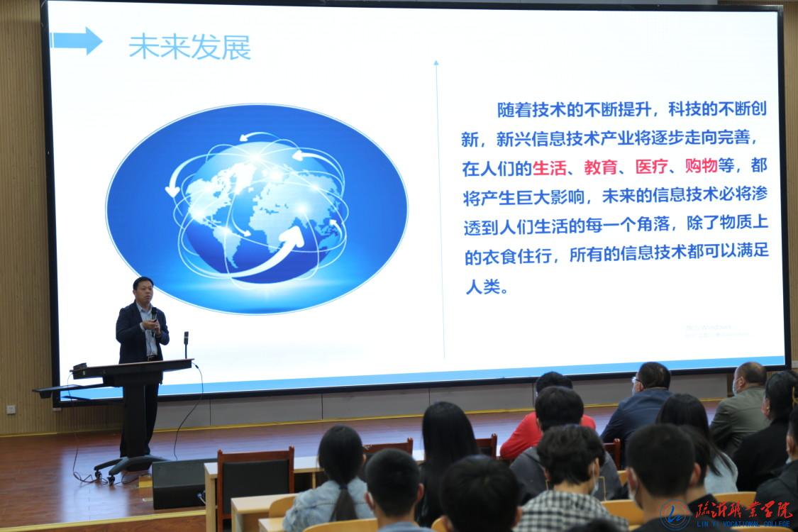 本次讲座以“站在新一代信息技术的前沿起飞”为主题,内容涵盖信息工程学院专业介绍、信息技术人才需求状况、专业人才成长之路等方面。