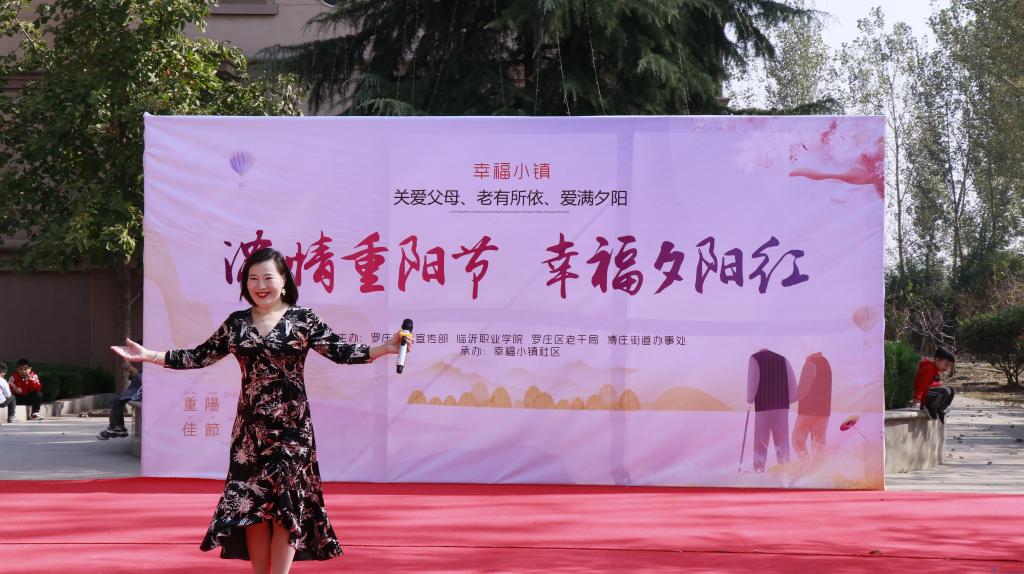 10月25日,庆祝重阳节文艺演出送进社区。“夕阳无限好,何须惆怅近黄昏”,李国栋老师的《夕阳红》甜美深情、余音绕梁;李宗芝老师的《党旗正鲜艳》紧扣党员教育主题;崔士广老师和现场老年人一起清唱了《毛主席的书我最爱读》,赢得了雷鸣般的掌声;崔建琛、李英杰老师和各专业学生也向社区展示了各专业的风采;空中乘务专业的十名学生作为礼仪人员也成为整个活动现场极其靓丽的风景线。