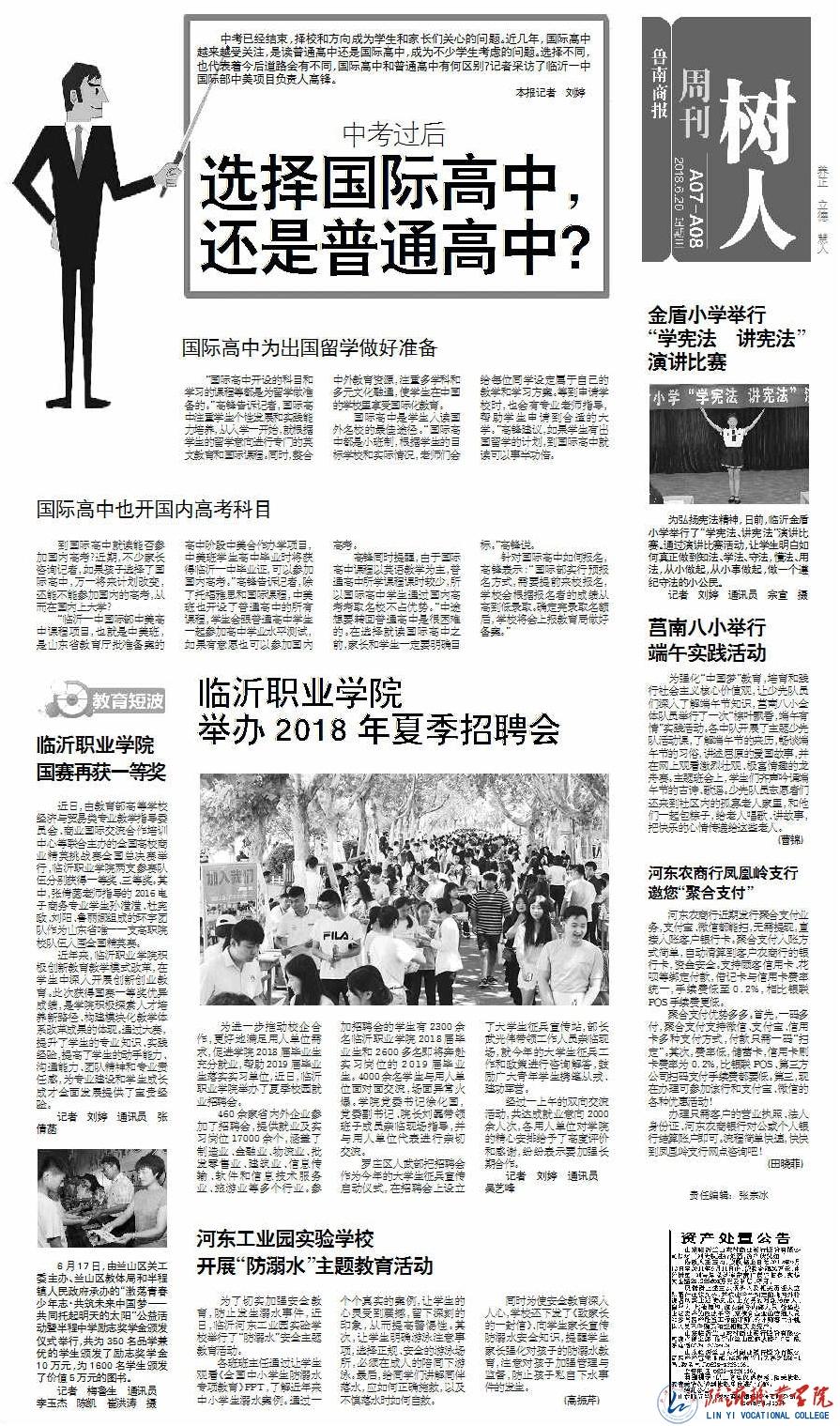 鲁南商报:临沂职业学院举办2018年夏季招聘会
