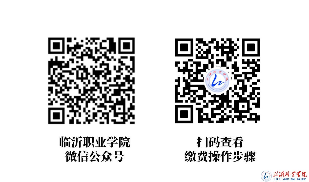 移动端地址:搜索学校公众号[临沂职业学院]并关注或者扫描右侧第一个二维码进行关注。进入公众号后点击选择缴费系统进行缴费,详细缴费操作步骤可扫描右侧第二个二维码进行在线观看或者下载预览。