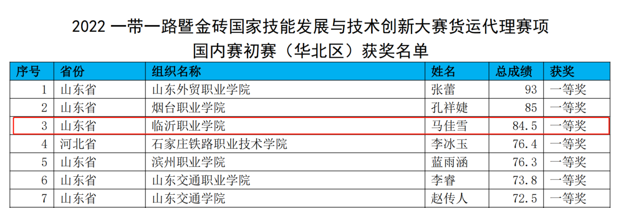 近日,我校商贸物流学院学生马佳雪在2022一带一路暨金砖国家技能发展与技术创新大赛“货运代理”赛项国内赛初赛中,取得华北区一等奖第三名的好成绩,并顺利入围全国总决赛。
