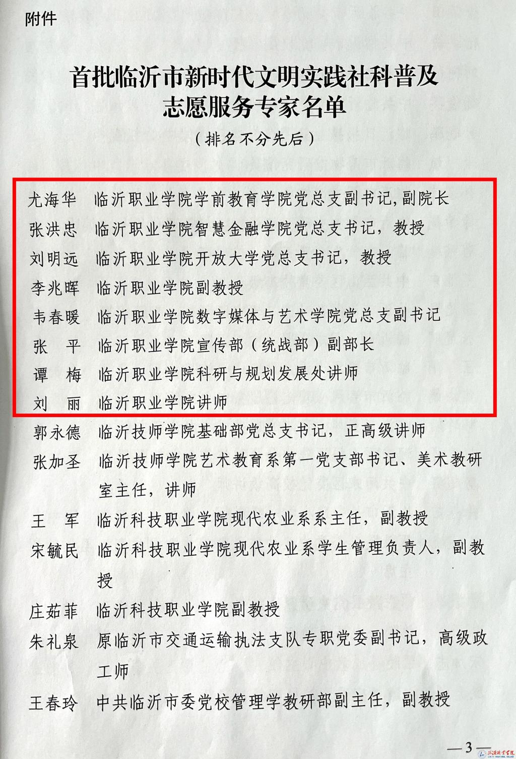 近日,临沂市社科联公布首批临沂市新时代文明实践社科普及志愿服务专家库名单,我校8名教师入选。