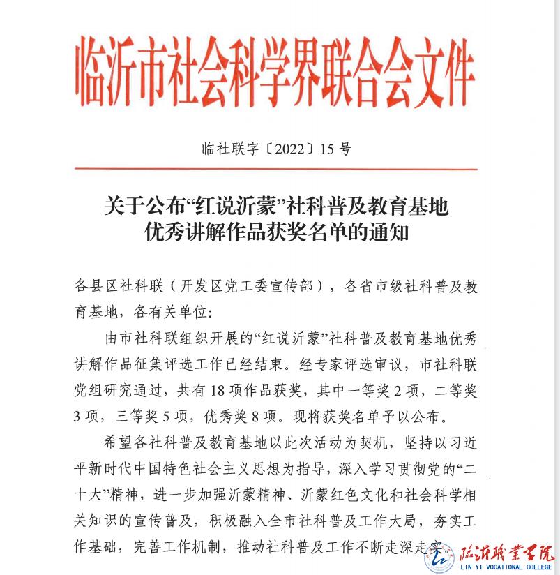 马院教师在“红说沂蒙”社科普及教育基地优秀讲解作品征集活动中获奖