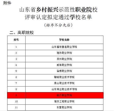 山东省教育厅公布了第一批《关于山东省乡村振兴示范性职业院校评审认定结果的公示》,我校在验收中成绩优秀,成功入选山东省乡村振兴示范性单位。